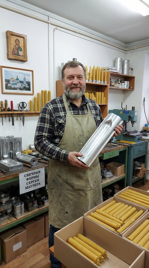 Меня зовут Сергей Маузер (в миру — Каргопольцев). В 2009 году я основал Научно-производственную компанию, где начал выпускать формы для церковных, медицинских и декоративных свечей. На каждой форме я выгравировал своё кредо: «Свеча должна гореть ровно, мастер должен любить своё дело». Эти слова — не просто надпись, а принцип, которым я руководствуюсь каждый день.
